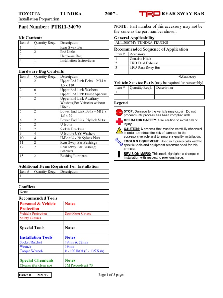 2007 toyota tundra trd rear sway bar install duration.